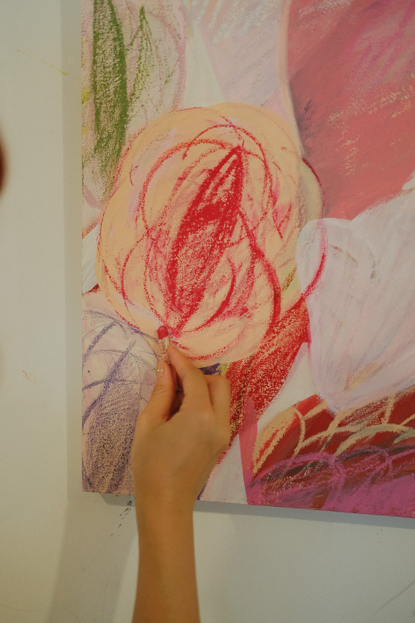 「今回は、自分の色である『赤』をベースに描いていきました。唯一、自分と同じ赤色を使いたくなる人がいるんですが、私は今回、その人のことを思いながら、その赤色で描きました。彼女からもらった愛、私が彼女を思う愛が、今回の絵にすべて表れていると思います。