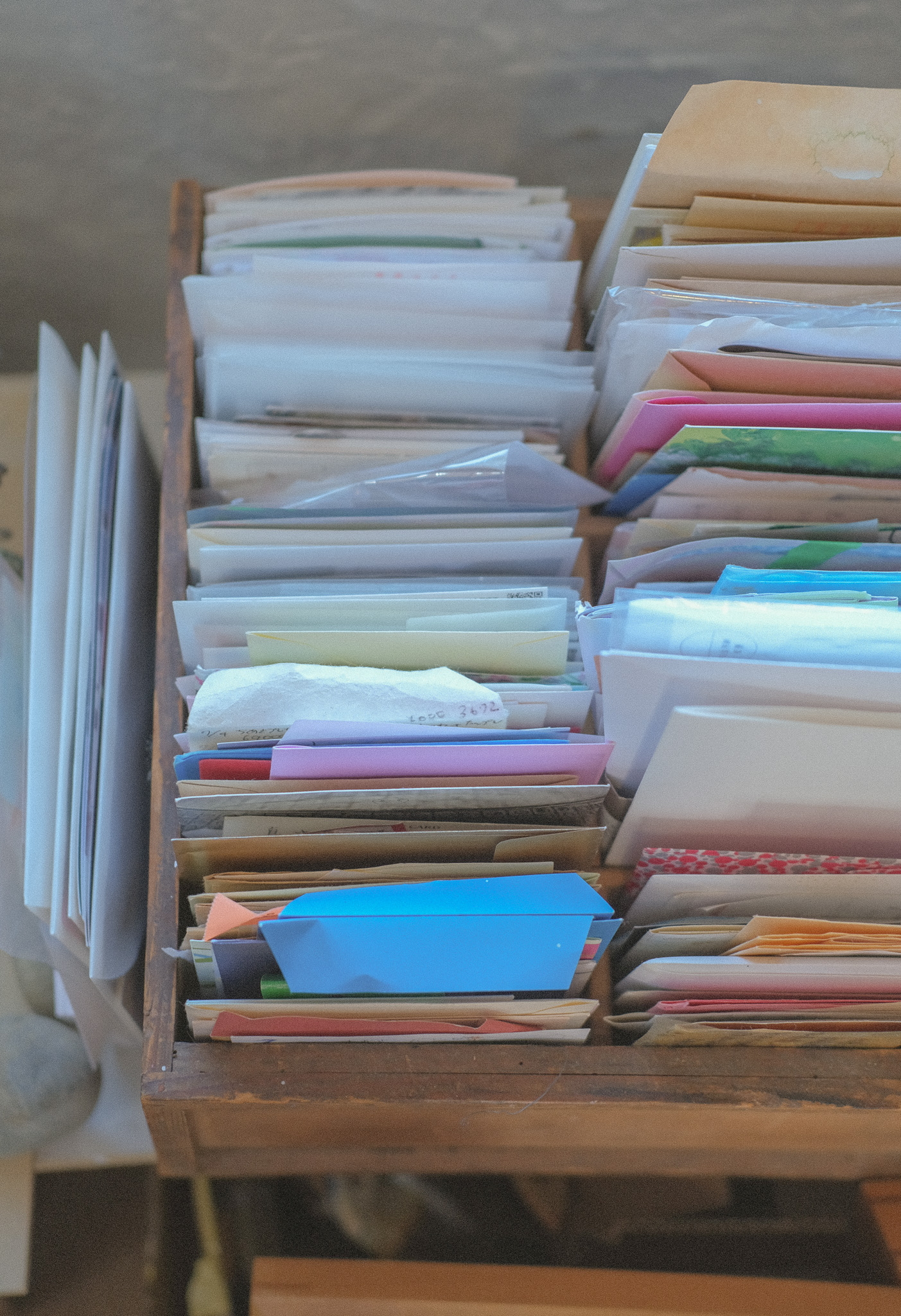 「花、カラフルな色彩が好きなことも、ずっと変わっていません。幼稚園の頃には夢中で花を描いていました。自分の気持ちを解放できるモチーフだったのかなって思います。でも、花というモチーフが自分の中に確立するまで、いろんなものを描いてきた気がします。そうする中で、『これが一番伝えたいことが伝わる』とわかって、いつの間にか花だけを描くようになりました。手紙には名前も書きたいので、文字も、いろんな色、形で表現していたと思います」